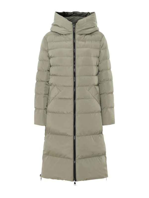 The Keila Long Padded Coat is a longline, quilted outer layer by Rino and Pelle. Horizontal baffles contain recycled polyester padding for warmth, while a generous padded hood and full-length two-way zip offer coverage and versatility. Angled front pockets and side hem zips aid movement and layering, complemented by a long zip pull for easy handling. The practical lining and wipe-clean shell make care straightforward. Ideal for commutes and weekend wear, this coat focuses on function and comfort during colder months.