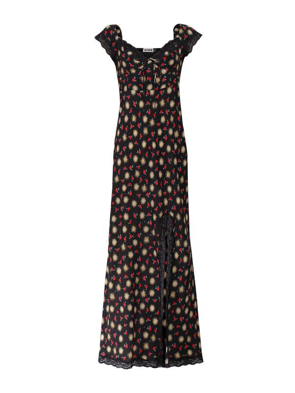 The RIXO Amala dress is a stunning new style with a beautiful "Sun Petal" print. Cut from pure silk with an elegant full-length silhouette, this summer showstopper can be styled with sandals on holiday or dressed up with heels for a wedding or evening event. The dress features a sweetheart neckline, lace trims and a stylish front slit detail.