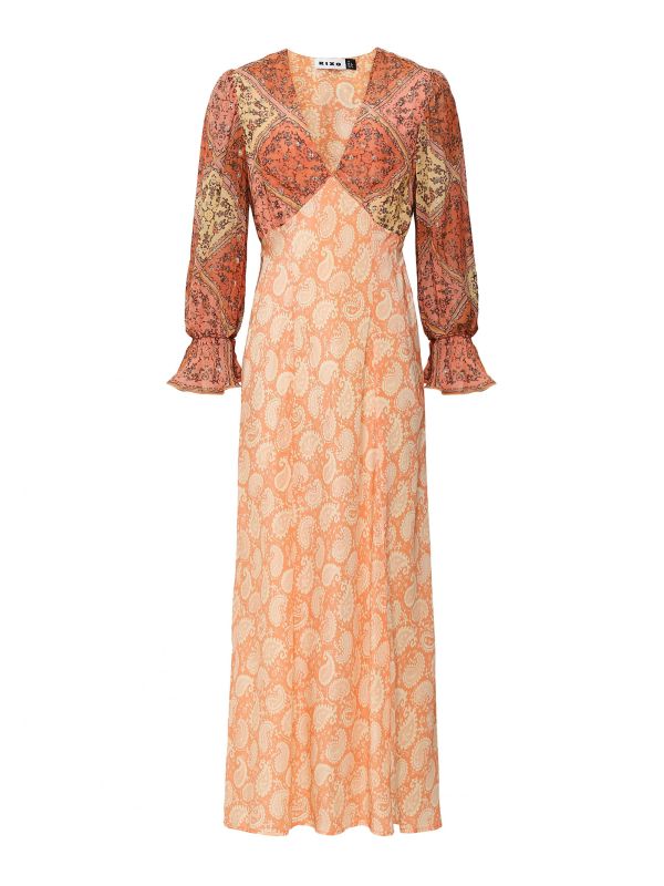You will be sure to stand out in the stunning RIXO Aoife dress. Expertly crafted from premium fabrics with a luxurious silk lining, the dress offers a bias cut and contours to the body. With a v neckline, sheer blouson sleeves and a slit to the front, the unique dress is complete with mixed paisley prints all over. Style yours for your next evening event to ensure all eyes are on you.