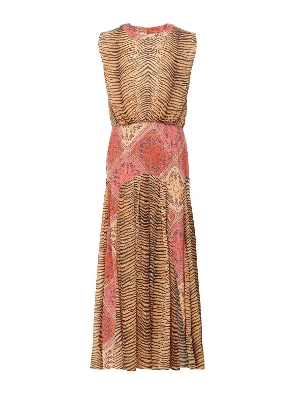 The RIXO Coralie dress is perfect for making a statement at your next evening event. Beautifully crafted from premium fabrics, this super distinct dress boasts a ruched empire waistline and hugs the hips, offering a flattering silhouette. Featuring a high round neckline, cut out back with button fastening and sleeveless design, the dress is complete with a tiger scarf print.