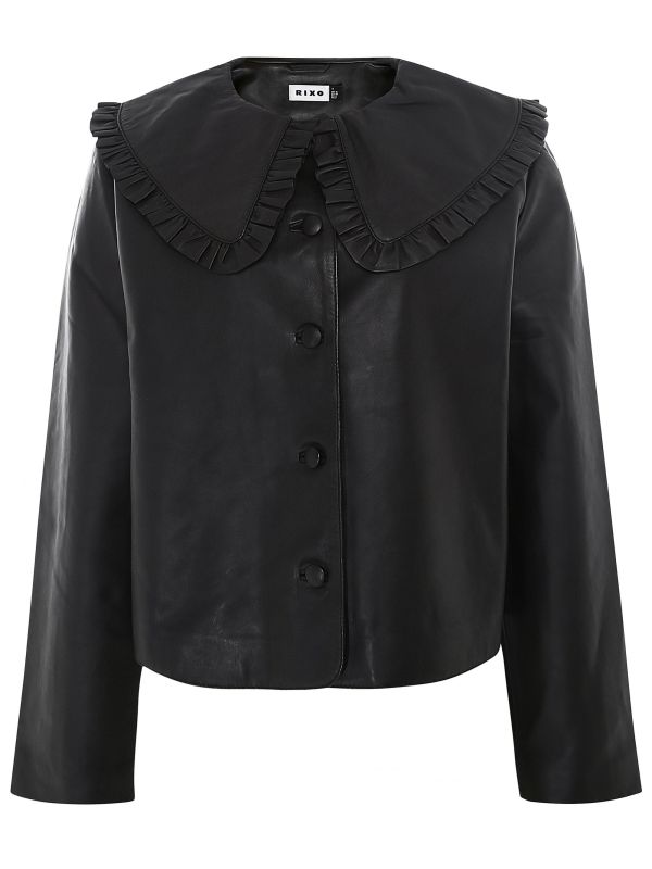 Combining the classic leather jacket with a touch of femininity; the RIXO Debbie jacket. Expertly crafted from pure leather, the jack boasts a boxy silhouette, a button fastening, and long sleeves. Complete with an oversized frill collar, the jacket is perfect for layering over any casual or smart look.