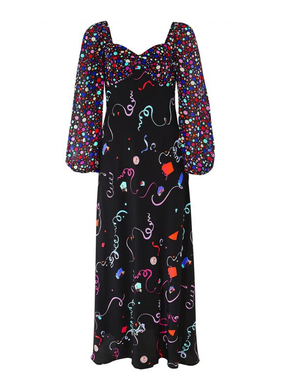 Elevate your evening ensembles with the RIXO Gio dress. Beautifully cut from pure silk to a midi length, the dress boasts a flattering sweetheart neckline, long blouson sleeves and is finished with an all over print. Make a lasting impression with this dress by embellishing your look with bold jewelry.