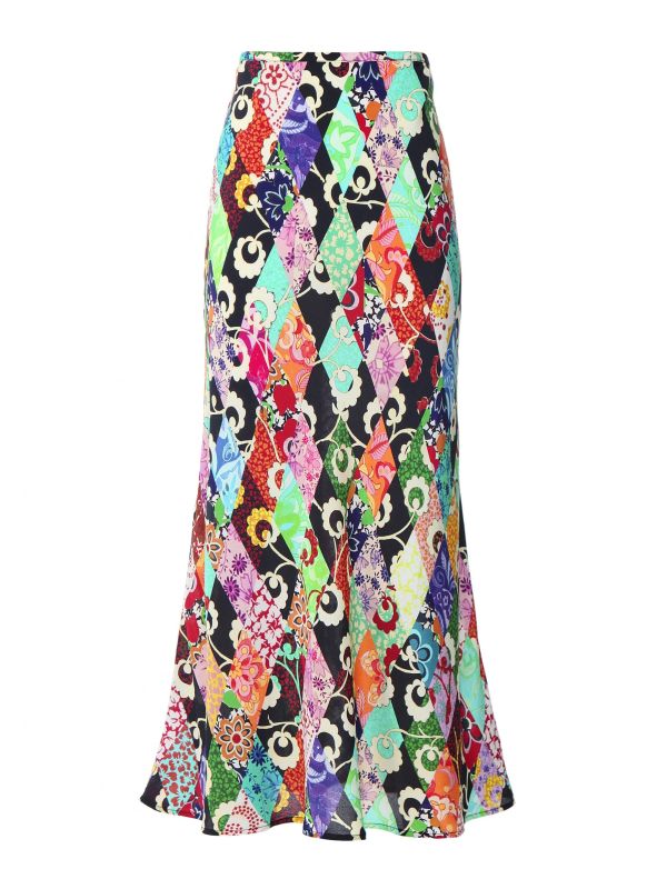 The RIXO Kelly skirt has been given an all-new retro update, boasting a colourful patchwork print throughout. Cut from 100% silk, this simple slip skirt is easy to style for all occasions, whether you team it with a tee and sneakers during the day or with a blouse and heels on an evening. The skirt features a concealed side zip fastening and has an ultra-versatile midi silhouette.