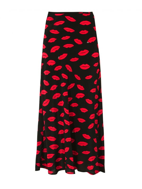 Incorporate elegance and sophistication into your seasonal outfits with the RIXO Kelly slip skirt. Beautifully crafted from pure silk, the skirt has been cut to a midi length which is complemented by a true waist. With a bold lip design all over, this skirt pairs perfectly with a simple heel.
