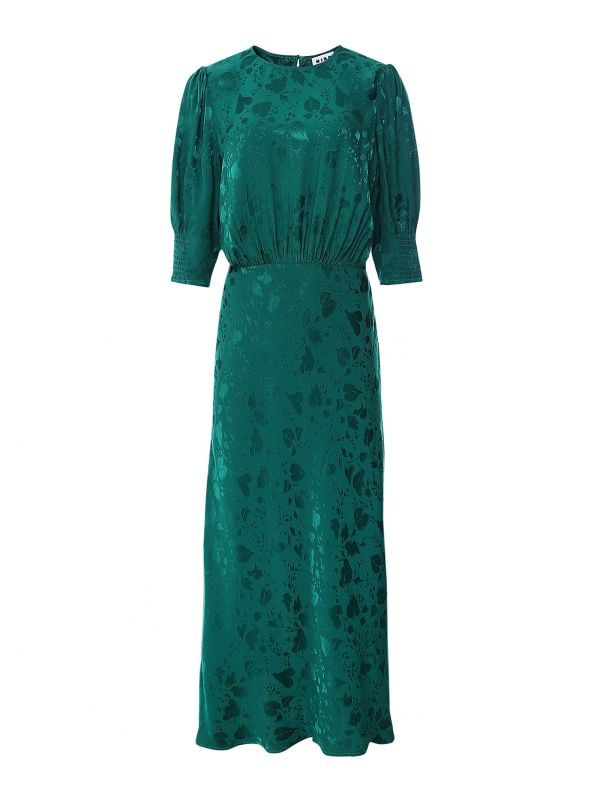 Add sophistication to your dress collection with the RIXO Lucile dress. Cut to a midi length the dress has been lovingly crafted in viscose, the dress offers a true waist and elasticated short sleeves. Complete with a beautiful subtle leaf pattern all over, the RIXO dress can be worn all year round.