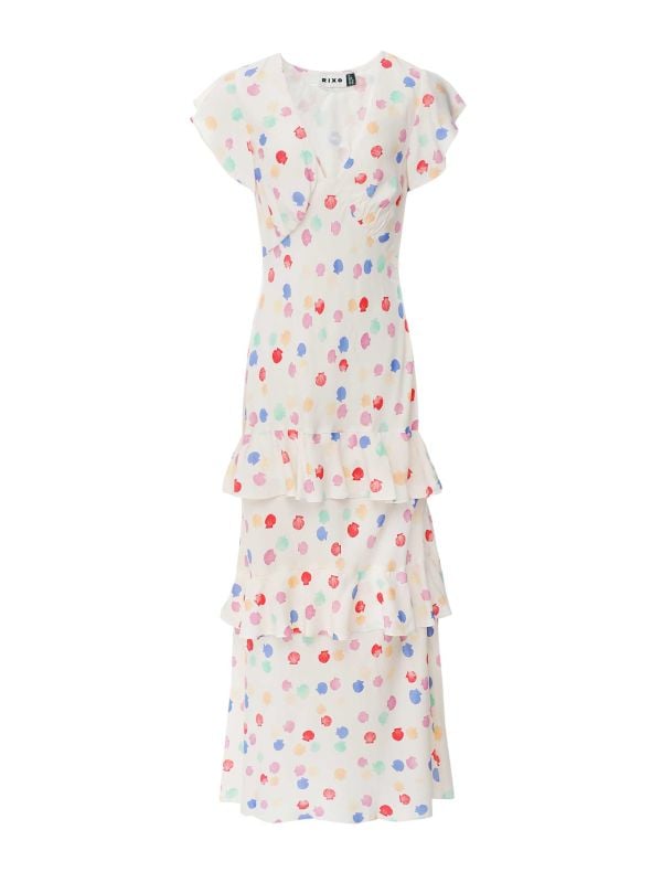 RIXO's Meena Dress is a colourful choice that's perfect for any occasion. Crafted from silky-smooth viscose adorned with a multicoloured shell print, this RIXO midi dress is a fun style with flattering details.