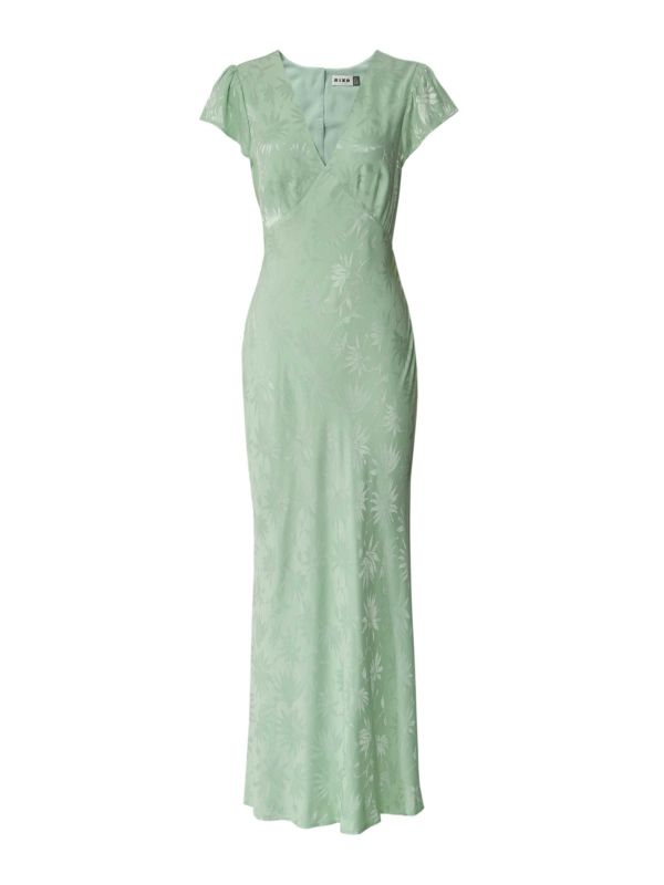The empire waist lends a graceful touch, leading to a mesmerising bias-cut skirt that drapes gracefully with every step. Adding a touch of allure is the upper back keyhole opening, subtly revealing skin, while the cut-out lower back adds a contemporary flair. Finished with a concealed side zip for seamless wear, the RIXO Tallulah dress effortlessly marries timeless sophistication with modern sensibility, making it an impeccable choice for any occasion.
