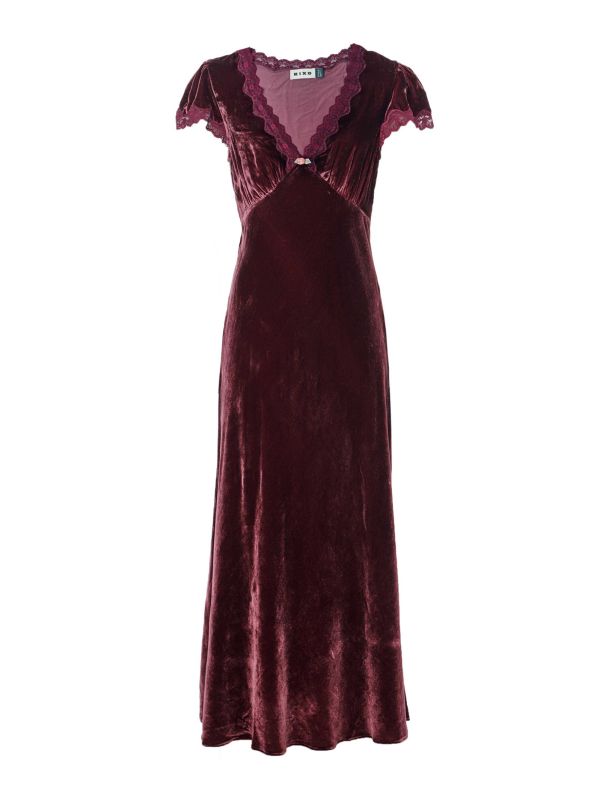 A party-wear must-have, discover the RIXO Clarice dress. This luxurious midi dress is crafted from soft velvet fabric and showcases RIXO's beloved bias cut, offering the most flattering fit. It has a V neckline, empire waist, adjustable tie at the waist and cap sleeves with lace trims. A small rose on the neckline finishes the design, adding a vintage feel. Style this RIXO midi dress with your party heels and gold jewellery.