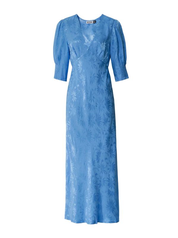 The RIXO Zadie dress exudes timeless elegance with its exquisite craftsmanship and intricate details. Crafted from luxurious viscose, it drapes beautifully on the body, accentuating the feminine silhouette. The empire waist creates a flattering shape, while the bias cut adds fluidity to the movement.