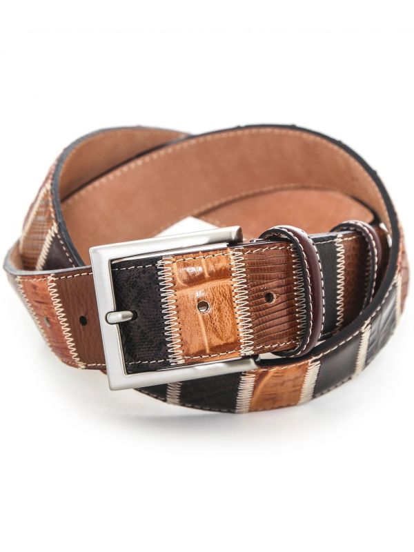 Elevate your accessories with the luxurious Robert Charles patchwork belt. Expertly handmade in Italy from the finest grained leather, the 40mm belt has been designed to match with casual jeans. Featuring a solid brass buckle, soft nubuck leather lining and textured patchwork design, whilst being presented in a stylish branded box that would make a superb gift for a loved one.