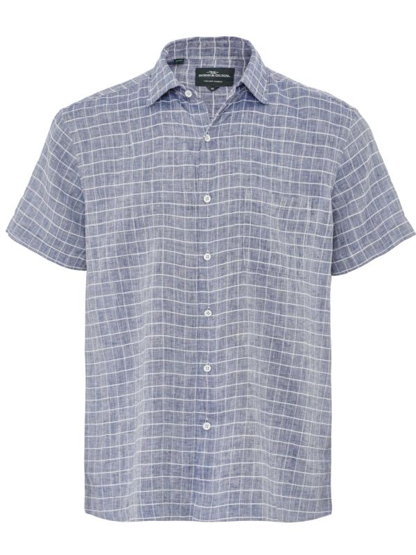 The Rodd and Gunn Croftview Linen Shirt is a short-sleeve button-through designed for easy warm-weather wear. It features a relaxed open collar, a button-through front and a single chest patch pocket. The windowpane check adds subtle texture across the body, while a straight hem and short sleeves make layering straightforward over tees. Finished with tonal buttons and a breathable linen-cotton weave, this piece balances comfort with casual tailoring for daytime and holiday dressing.
