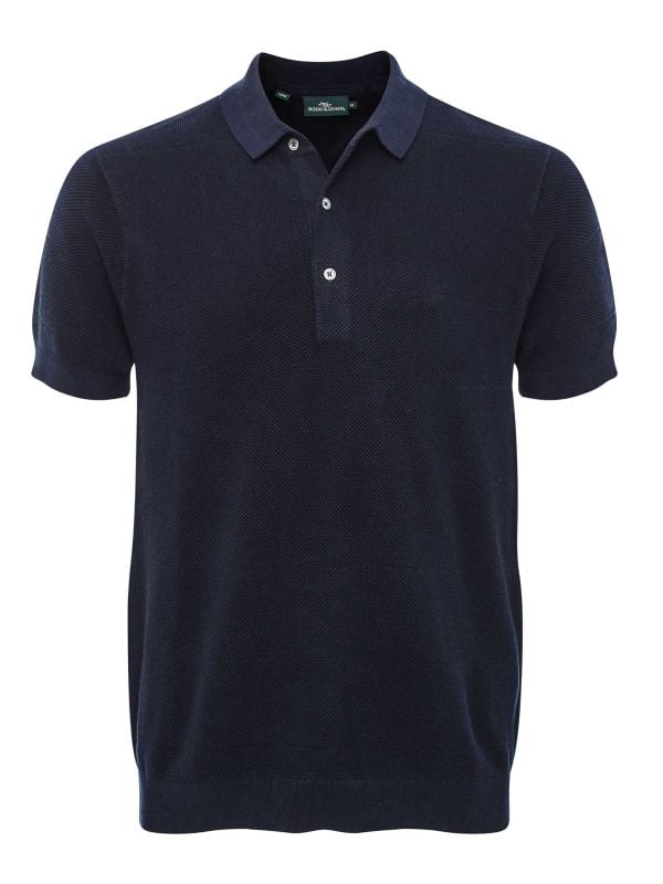 The horizontal stripe texture adds subtle dimension, while the polo collar and three-button placket—finished with mother-of-pearl buttons—bring a classic feel. Reinforced seams enhance longevity, and ribbed trims keep the fit sharp. Designed in a regular fit, this short-sleeve Rodd & Gunn polo is an easy go-to for effortless everyday style.