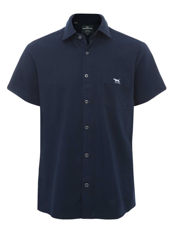 The French placket and knife pleats add a polished touch, while the patch pocket and embroidered pointer dog logo reinforce its signature style. Cut in a sports fit for a tailored yet comfortable silhouette, this short-sleeve Rodd & Gunn shirt is finished with a curved hem for effortless wear, whether tucked in or left loose.