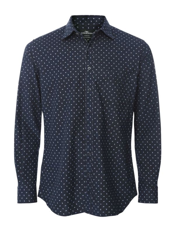 The Rodd and Gunn Harrington shirt is a smart-casual staple with a touch of personality. Made from soft cotton and garment washed for a broken-in feel, it features a subtle micro paisley pattern that adds character without being over the top. Designed with a pointed collar with stays, a button-through front, and classic knife pleats, it balances polish with comfort. Finished with long sleeves and adjustable round cuffs, this sports-fit Rodd and Gunn shirt is ideal for versatile, everyday styling.