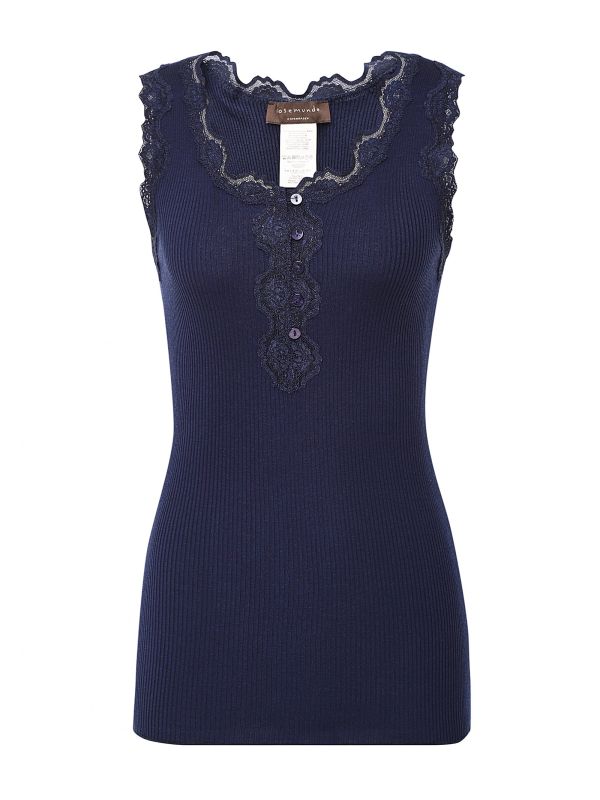 The Rosemunde Babette vest is a staple piece in every woman's wardrobe throughout the Spring/Summer months. Beautifully crafted from a silk and cotton blend, the vest boasts lace details to the neck and armholes. With buttons to the front and a slim fit ribbed body, this vest is super comfy and flattering.