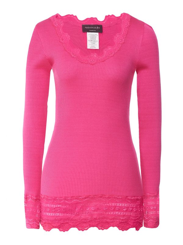 The Rosemunde Benita top is a must-have for your everyday wardrobe. Crafted from a luxurious blend of cotton and silk, this ribbed long sleeve top offers a stretch fit for a flattering silhouette, while a lace trim provides an elegant finishing touch. Team this versatile top with your favourite jeans and sneakers on laid-back days.