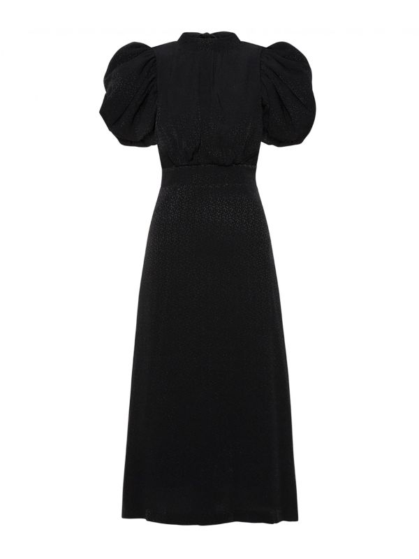 Back for SS21 in classic black, the ROTATE Dawn dress is a stunning piece for your evening wardrobe. Crafted in sustainable viscose ECOVERO, this satin dress features puffed sleeves and a slim midi silhouette that's super flattering styled with heels. Finished with an open back and neck tie fastening, this unique dress is sure to turn heads at your next event.