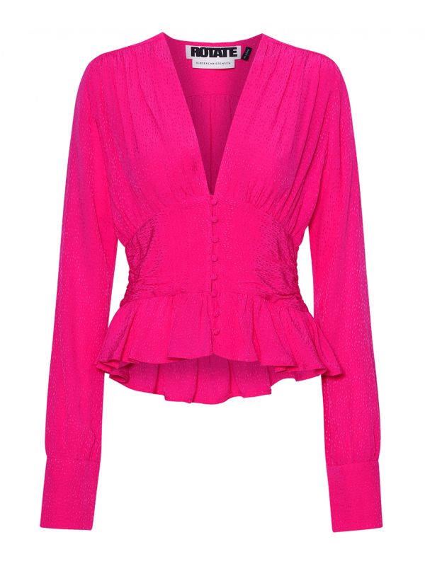 The ROTATE Tracy top is an elegant style for day-to-night dressing. Expertly crafted in 100% eco-responsible viscose, this beautiful top features a V-shaped neckline, button down fastening, long sleeves with cuffs, frill hem and a silhouette that highlights the waist. Team this fuchsia top with jeans and heels for cocktails in the city.