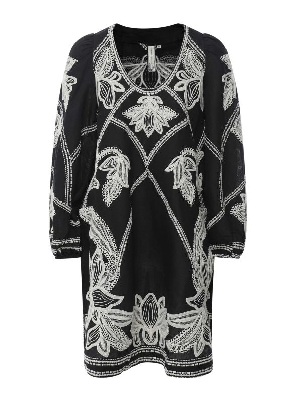 From special occasions to relaxed lunches, the Eileen Dress by Scarlett Poppies will take you anywhere. Crafted from a lightweight linen-viscose blend, this Scarlett Poppies mini dress is a must for warmer weather. This straight cut, relaxed-fit dress features a scoop neckline, long sleeves with elasticated endings and contrast cord and embroidery throughout. Simply pair with heels or flats.