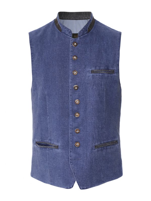 Lend your summer attire vintage-inspiration with the Schneiders Maas vest. Lovingly tailored in premium linen, the vest has been given a washed treatment that provides a unique lived-in quality. Featuring a granddad collar, full button-through fastening and front welt pockets, whilst the chunky horn buttons give the vest stunning artisan detail.