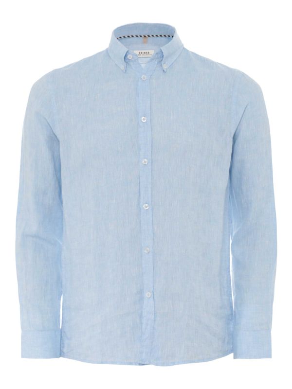 The Seinse Button-Down Linen Shirt is a lightweight casual shirt in a subtle dobby weave. It features a button-down collar, a button-through front placket and long sleeves with single-button cuffs. Cut for a relaxed silhouette, it works equally well layered or worn alone. Fine topstitching and tonal buttons emphasise the considered detailing. The breathable 100% linen construction offers comfortable wear in warmer months while retaining a neat, tailored appearance suited to both relaxed and smarter outfits. A versatile option for seasonal dressing.