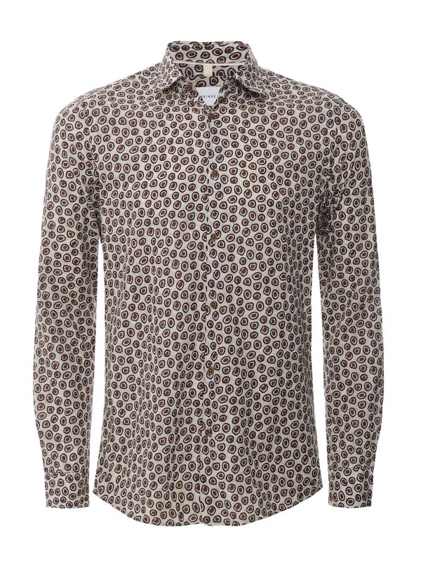 The standout feature of this shirt lies in its abstract repeat print, which lends a contemporary edge to its classic silhouette. Tailored to a slim fit, it accentuates the wearer's physique, making it an ideal choice for those seeking both style and sophistication in their attire.