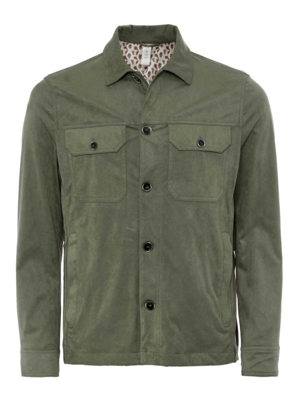 The Seinse Faux Suede Overshirt is a shirt-style jacket cut from a suede-effect fabric that blends structured tailoring with casual details. It fastens with a button-through front and horn-effect buttons, and features twin chest flap pockets, discreet side-welt pockets and long sleeves with button cuffs. A point collar grounds the silhouette while a patterned inner lining and mesh panels add breathability and comfort. Wear it as a light outer layer over knits or shirts for transitional-season versatility.