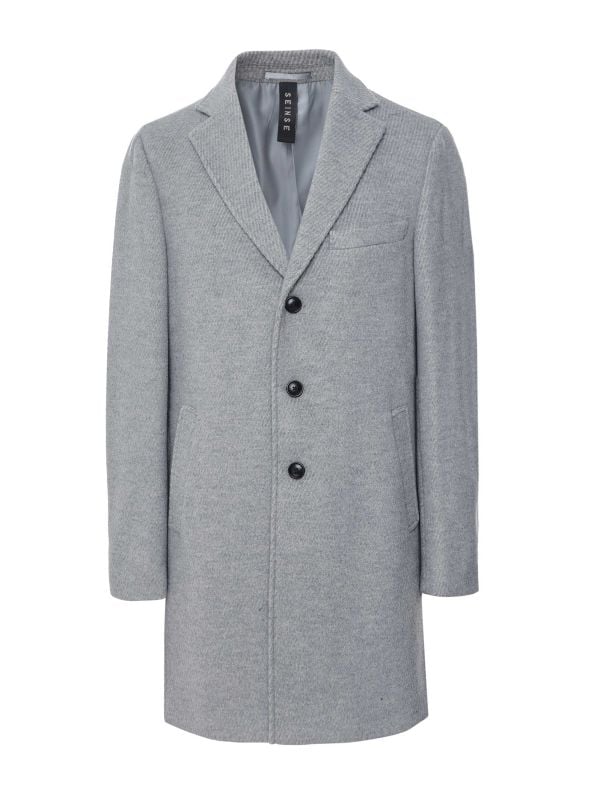 The Seinse long coat is a timeless outerwear piece, crafted from a soft twill-woven fabric that delivers both structure and comfort. Designed with a classic single-breasted silhouette, it features a three-button closure and sharp notch lapels for a refined yet relaxed look. Practical welt chest and side pockets add function, while buttoned cuffs complete the tailored detailing. Cut to a regular fit, this Seinse coat offers effortless sophistication for everyday wear.