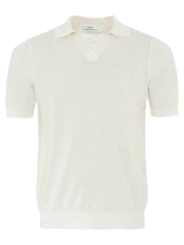 An elevated take on a summer knit, the Open Neck Polo from Seinse pairs a clean open V-neck and soft collar with short sleeves and a ribbed hem for a streamlined silhouette. The fine knit provides a lightweight drape that works well on its own or layered under a jacket. Subtle finishing and minimal seams keep the focus on shape and texture. Pair with smart Pants for a considered casual look.