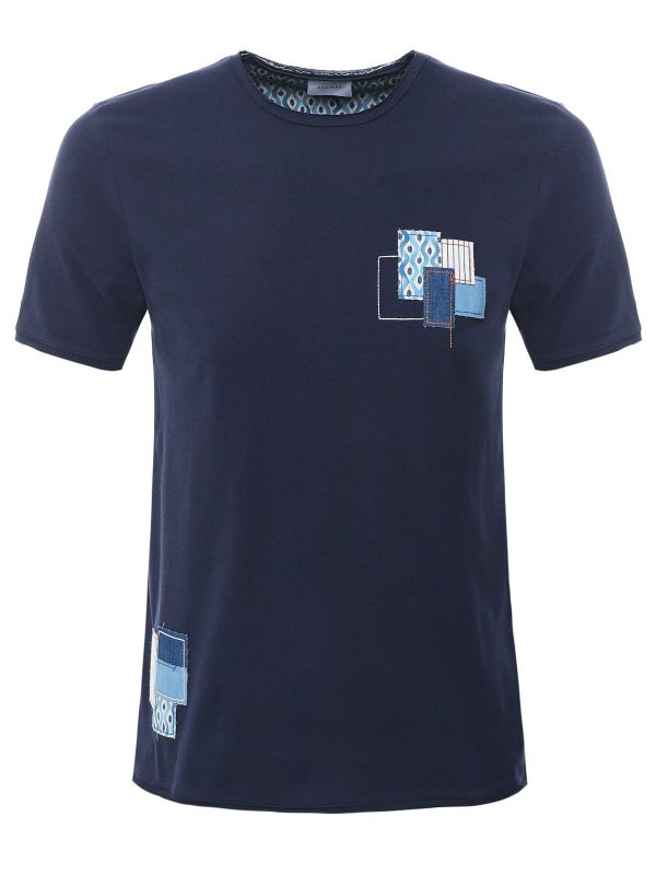 Its classic crew neck design offers timeless appeal, while the embroidered patchwork detailing adorning the chest and hem adds a touch of individuality and sophistication. With its short sleeves and regular fit, this t-shirt effortlessly combines casual charm with contemporary flair, making it a versatile wardrobe essential for any fashion-forward individual.