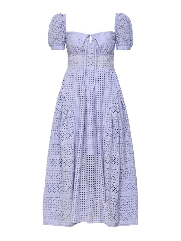 Make a statement at your next party with the Self-Portrait dress. Cut to a midi length with a striking full skirt, the dress has been expertly crafted from pure cotton. Featuring short voluminous sleeves, a square neckline, buttons on the front and tie detail, the stunning half-lined dress is complete with a must-have Broderie Anglaise fabric design.