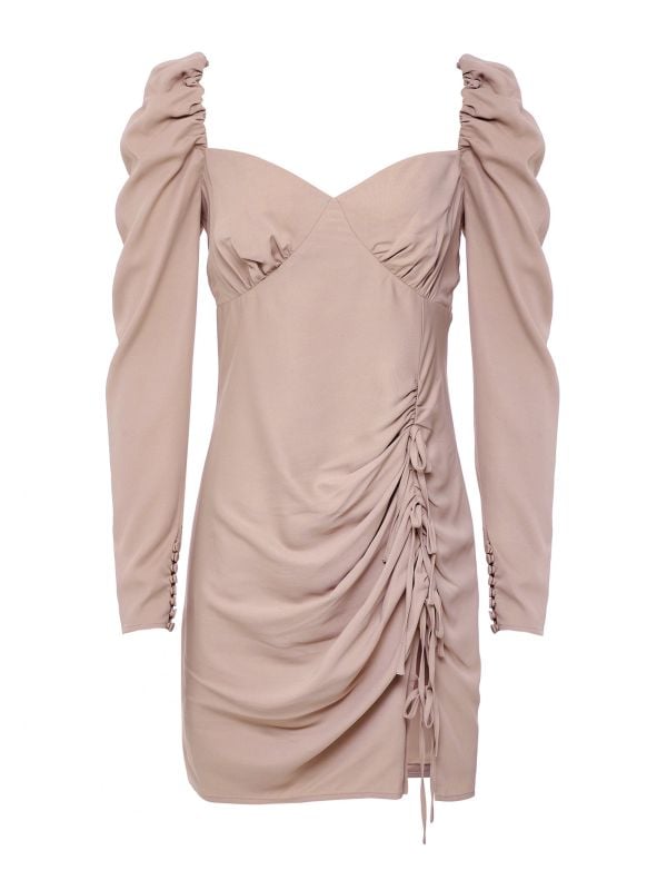 Invest in the Self-Portrait Crepe dress for the ultimate evening outfit. Beautifully crafted from a viscose blend, the dress boasts a delicate sweetheart neckline. Featuring a fitted ruched skirt, buttons at the cuff and tie detail to one side, the dress is perfect for styling with your favourite pair of heels.