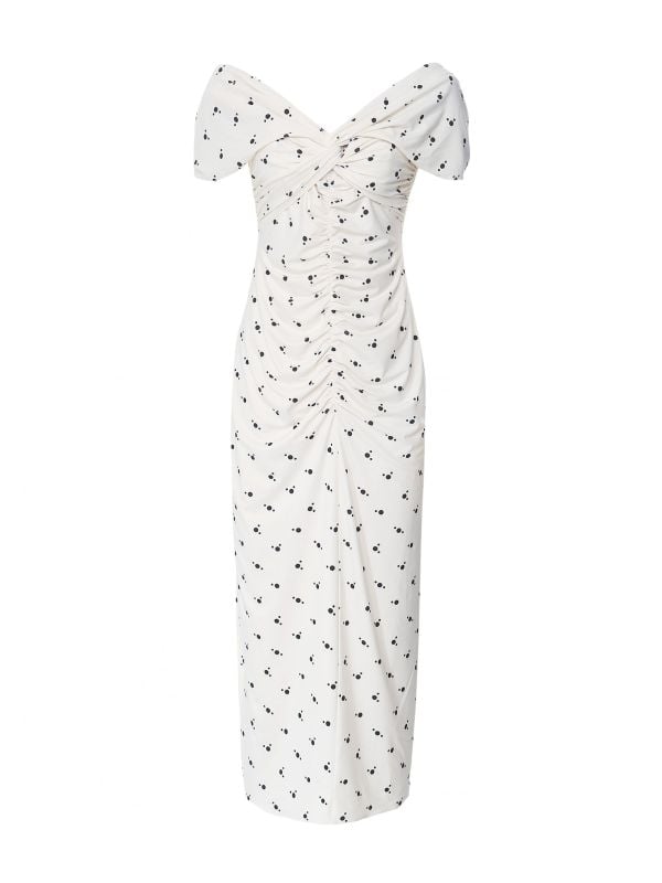 The Self-Portrait dress is a must-have to invest in this SS22. Beautifully crafted from draped jersey material, the dress has been cut to a super flattering fitted silhouette and a midi length. Featuring an off the shoulder sweetheart neckline, gathering to the front a twist design to the bodice, the dress is complete with a polka dot print all over. Style yours with simple heels for the ultimate evening look.
