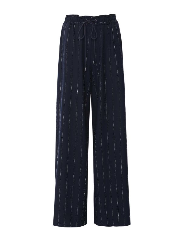 Dazzle all year long in the Self-Portrait Rhinestone Pinstripe trousers. Cut with a high waist and wide leg, these Self-Portrait trousers have an elasticated waistband with drawstring, back pockets and glittering rhinestone pinstripes throughout. Style yours with a blouse or the matching blazer for head-to-toe sparkles.