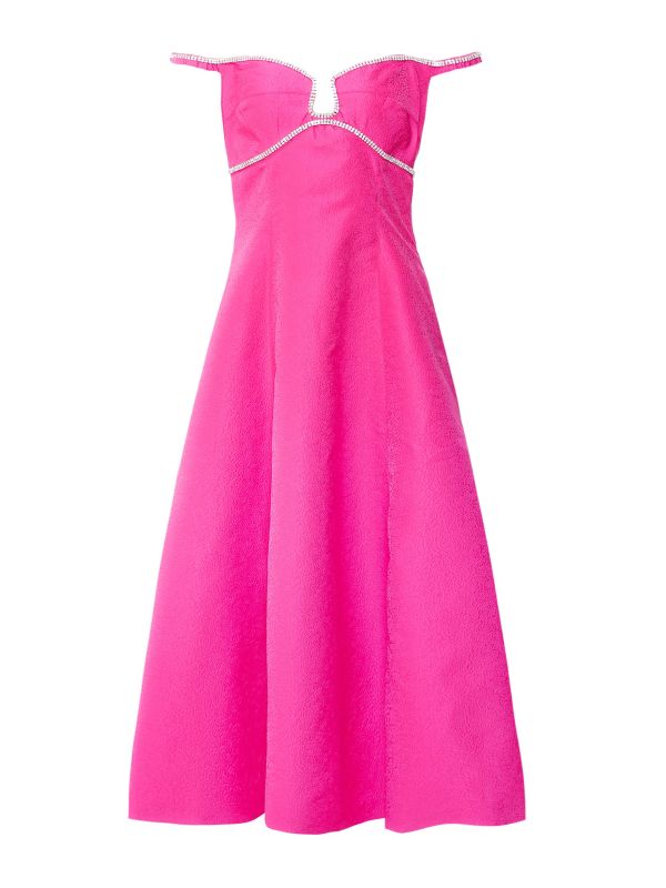 The Self Portrait textured midi dress will lend your evening outfits stunning drama. Beautifully designed in a textured fabric for a structured tactile handle, the dress showcases a flared midi skirt offering a sweeping silhouette. Featuring an off-shoulder neckline and dazzling diamante trim, with the magenta pink hue providing statement impact.