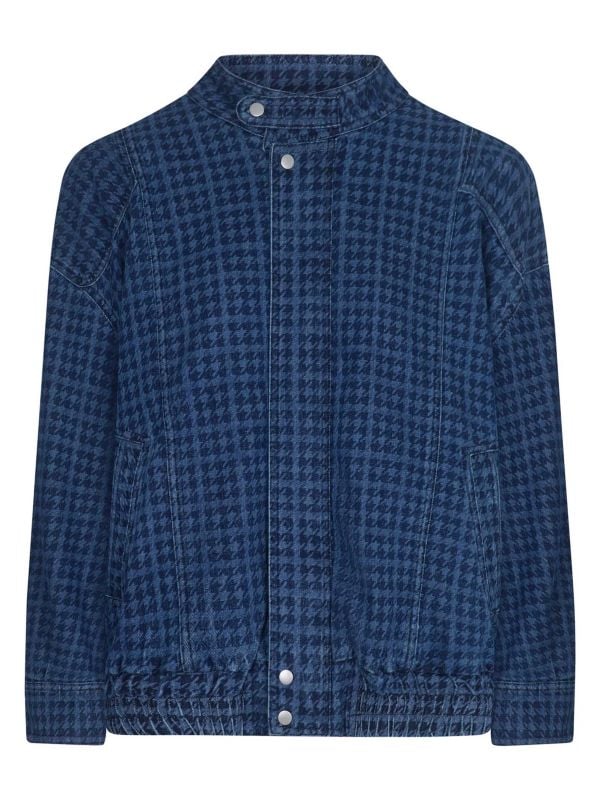 The Juno Oversized Bomber Jacket from Seventy + Mochi reworks an oversized silhouette with a bold houndstooth print. Designed with a snap-fastening stand collar, Zipper front and elasticated hem, it combines casual ease with considered tailoring. Dropped shoulders and full-length sleeves create a relaxed profile while inset side pockets add practicality. The jacket sits with a roomy fit intended for layering, making it a versatile outer layer through the seasons. Finished with visible topstitching and press-stud trims for everyday wear and comfort.