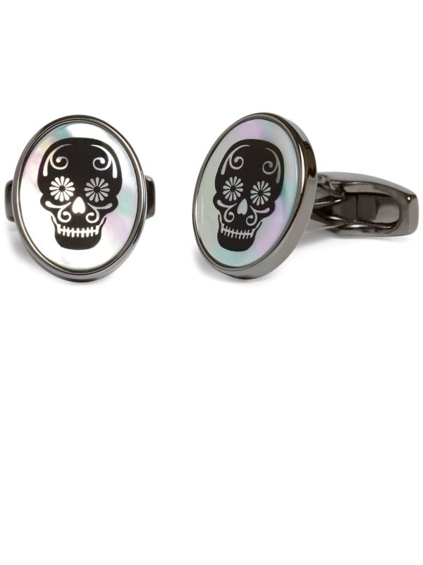 Showcase quirky luxury in the office with the Simon Carter mother-of-pearl skull cufflinks. Expertly crafted from a polished metal with classic T-bar fastenings, the cufflinks are finished with a mother-of-pearl inlay and black skull that adds breezy detail synonymous with the label.