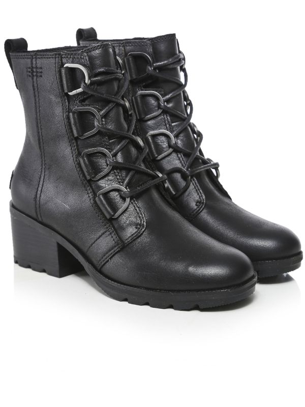 Upgrade your autumn/winter footwear with the Sorel Cate lace ankle boots. These signature booties offer a sleek silhouette, stylish laces and walk-anywhere comfort, making them the perfect staple for everyday styling. The boots are crafted in waterproof full-grain leather with a rubber grip sole for non-slip traction, and are complete with a leather wrapped block heel and leather heel pull tab.