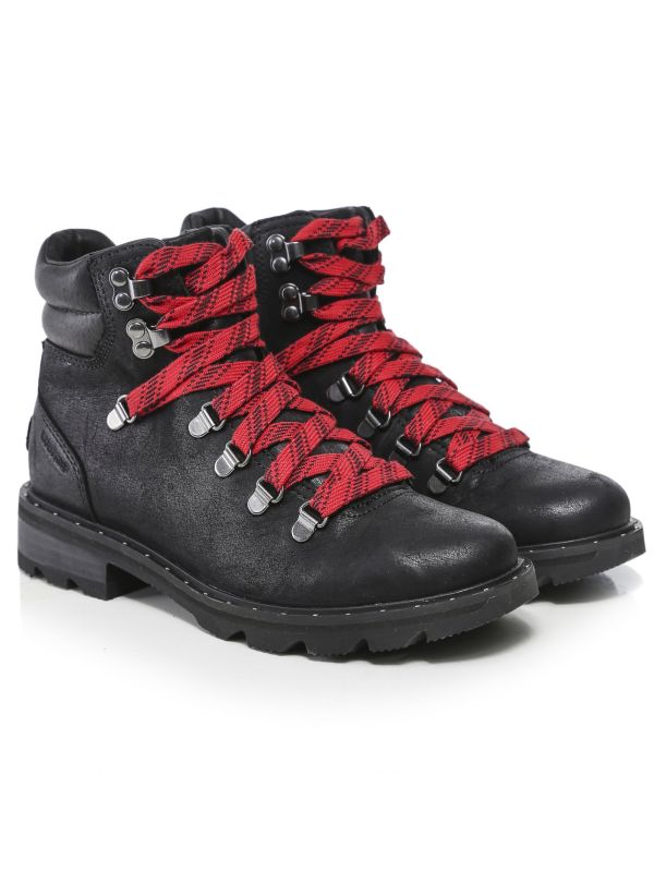 Stay stylish in all weathers with the Sorel Lennox hiker boots. These expertly crafted waterproof leather ankle boots feature a lace up fastening, pigskin padded collar and leather wrapped heel, with a heavy duty rubber sole ensuring elevated comfort and non-slip traction. These stylish Sorel boots are complete with studded detailing and authentic embossed branding.