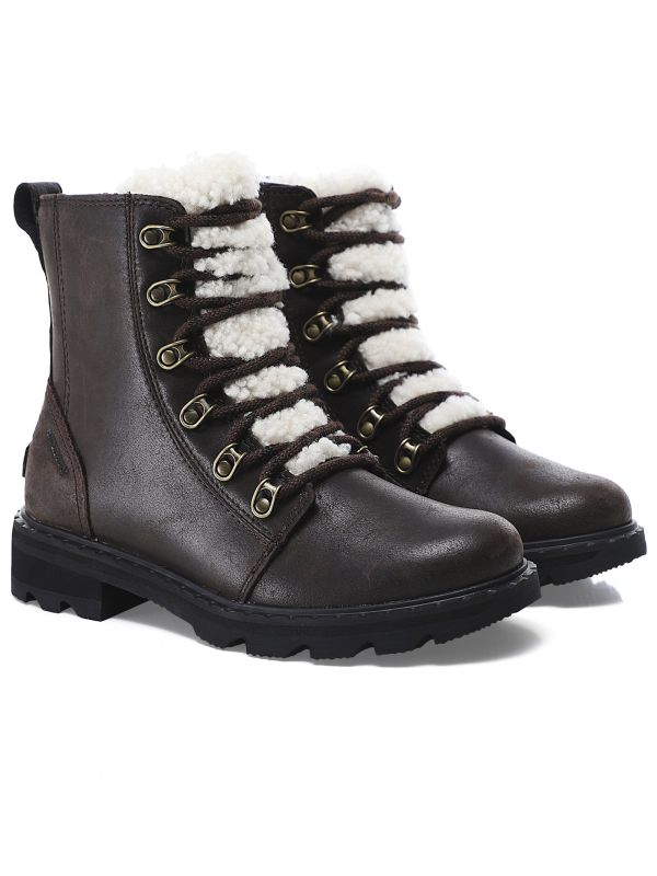 Stay stylish in all weathers with the Sorel Lennox boots. These expertly crafted boots have a waterproof full-grain leather and shearling upper, with a lace up fastening, EVA wrapped heel and heavy duty rubber sole ensuring elevated comfort and non-slip traction. These stylish Sorel boots boast a cosy microfleece lining and are complete with a leather heel pull tab and authentic embossed branding.