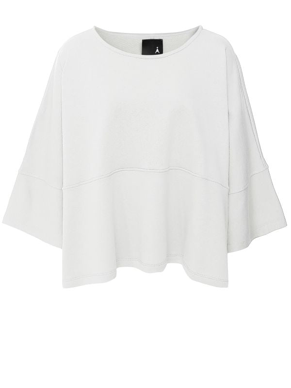 The Sort Aarhus Oversize Jersey Top is a relaxed, boxy silhouette in soft jersey with a wide scoop neckline and dropped shoulders. The generous cut falls into three-quarter, flared sleeves and is defined by a horizontal panel seam and a gently asymmetric hem that skims the hips. Its roomy proportions work well over tailored Pants or matching relaxed bottoms for a coordinated set. Wear alone for easy layering or under a lightweight coat. This top marries comfortable drape with considered seam detailing for casual, contemporary dressing.