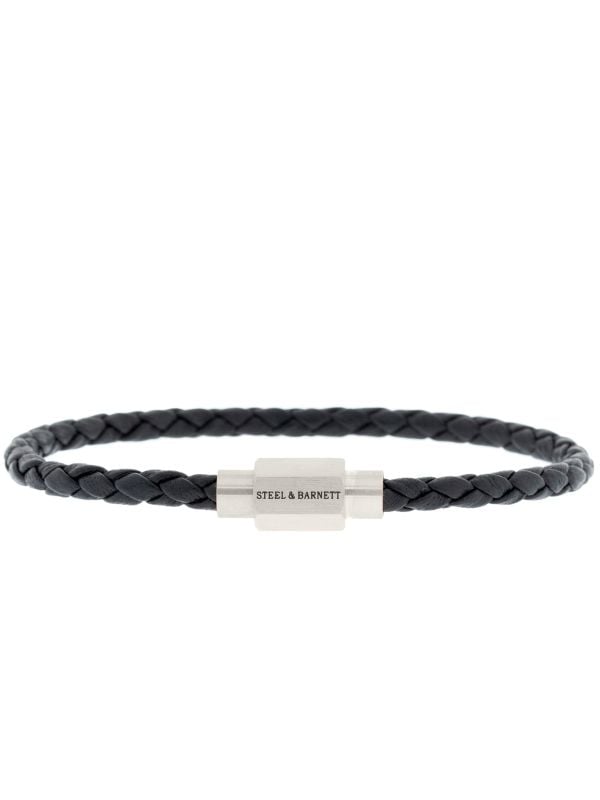 The stainless steel clasp, finished in brushed silver, offers both durability and elegance. A magnetic closure ensures easy wear and a secure fit. Available in medium and large sizes, this Steel and Barnett bracelet caters to various wrist sizes, making it the perfect addition to any modern man's wardrobe. Ideal for those who appreciate understated luxury with a masculine edge.