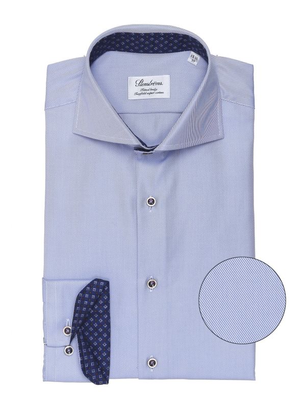 Add sophistication to your formal wear with the Stenstroms geometric trim shirt. Expertly tailored to the label's fitted body and crafted in premium twofold cotton twill, the shirt offers a modern silhouette and exceptional drape and lustre. Featuring a cut away collar, French placket and adjustable buttoned cuffs, whilst the geometric floral linings add charming detail.