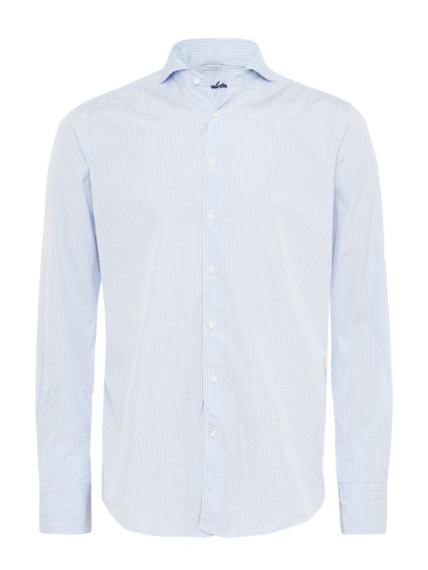 Showcase timeless pattern this season with the Stenstroms gingham shirt. Cut to the label's fitted body and crafted in premium woven twofold cotton, the blue check shirt lends a streamlined silhouette and crisp appearance. Featuring a cut away collar, French placket and adjustable cuffs, whilst the mother-of-pearl buttons offer a luxe finish.