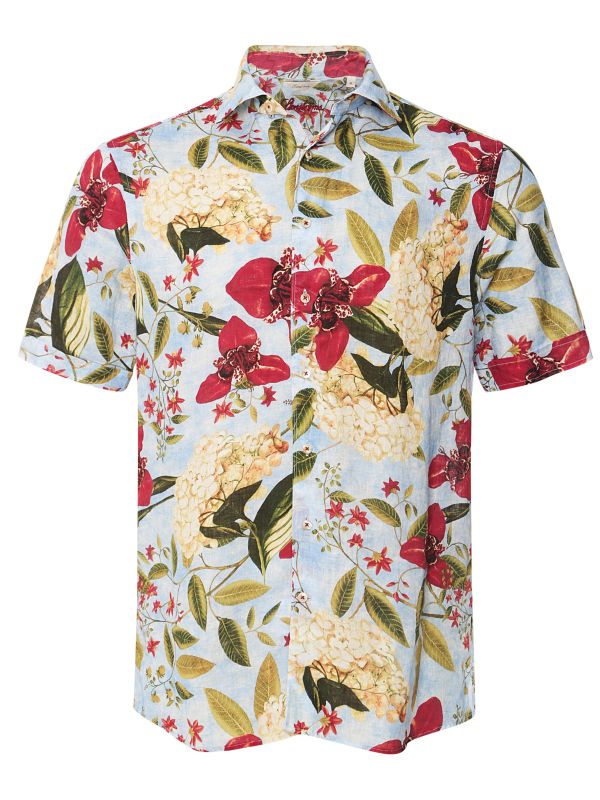 Liven up your summer wardrobe with the Stenstroms floral shirt. Cut to the label's fitted body and crafted in pure linen, the shirt offers a streamlined silhouette and essential breathability. Featuring a pointed collar, mother-of-pearl buttons and sleek French placket, with the bold floral print providing classic Hawaiian vibes.