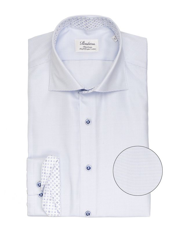 Elevate your formal wear with the Stenstroms micro pattern shirt. Lovingly tailored to a fitted body and crafted in twofold super cotton, the shirt lends a contoured silhouette and exceptional drape and lustre. Featuring a spread collar, adjustable cuffs and tonal mother-of-pearl buttons, whilst the charming contrast patterned linings add character synonymous with the Swedish shirtmakers.