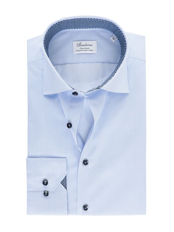 Designed with a fitted body, the Stenströms shirt features a moderate cut away collar, elegant French placket, and mother-of-pearl buttons that elevate its refined appeal. The timeless striped pattern is complemented by contrast collar and cuff linings, adding a sophisticated touch of individuality to this long-sleeve staple.