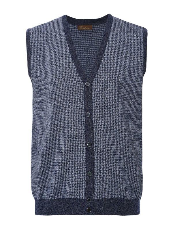 The Stenstroms houndstooth vest, meticulously crafted from luxurious merino wool, exemplifies both elegance and comfort. This sophisticated piece features a classic six-button closure, adorned with exquisite mother-of-pearl buttons that add a touch of refinement.