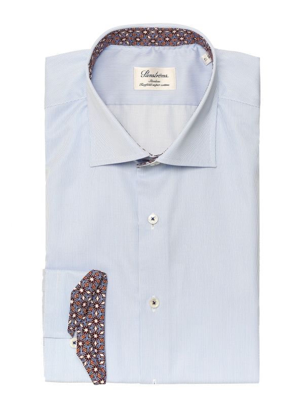 Add elegant style into your formal wardrobe with the Stenstroms pinstripe shirt. Expertly crafted in twofold super cotton that offers a fantastic drape and crisp appearance, the blue shirt has been cut to the label's slimline fit for a clean-cut silhouette. Featuring a pointed collar and adjustable single cuffs, whilst the pearlescent buttons and geometric floral lining enhance the shirt's luxurious qualities.