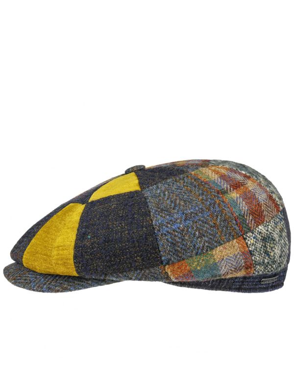 Add a charming finish to your look this season with the Stetson patchwork Hatteras cap. Expertly crafted in a super soft wool and silk blend, the newsboy cap is designed with bold patchwork tweed panels throughout for a handsome character. Featuring a stitched peak, top button and traditional eight piece construction, whilst the metal brand badge showcases an authentic finishing touch.